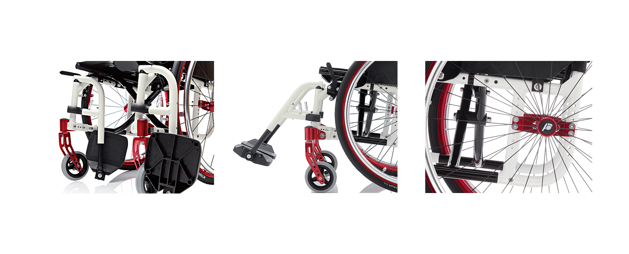 Der Exelle Vario kommt mir abschwenk- und abnehmbaren Fußplatten, deren Winkel Du über den konfigurierbaren Vorderrahmen bestimmen kannst. Und der Hinterrahmen? Ist schon im Standard vielfältig verstellbar. Mit dem optionalen Dynamic-Rahmen kannst Du aber noch einen draufsetzen und eine winkelverstellbare Rückenlehne und drehbare Einstellungen für die Radabdeckung hinzufügen.So wie Du ihn haben möchtest